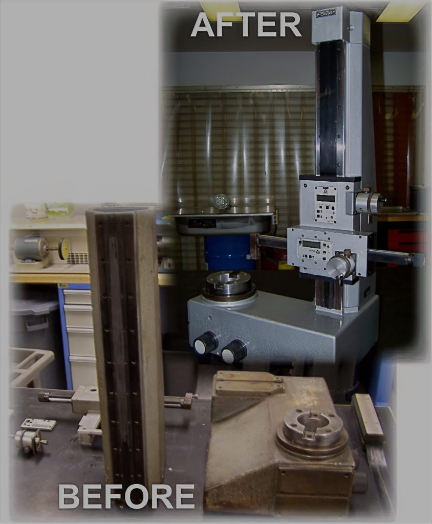 As with many large measuring systems that have price tags in the tens of thousands of dollars, sometimes replacement isn’t an option. We can in most cases rebuild your old system for a fraction of the cost of replacement. Pictured below is an aged Trimos tool presetter before reconditioning and after.