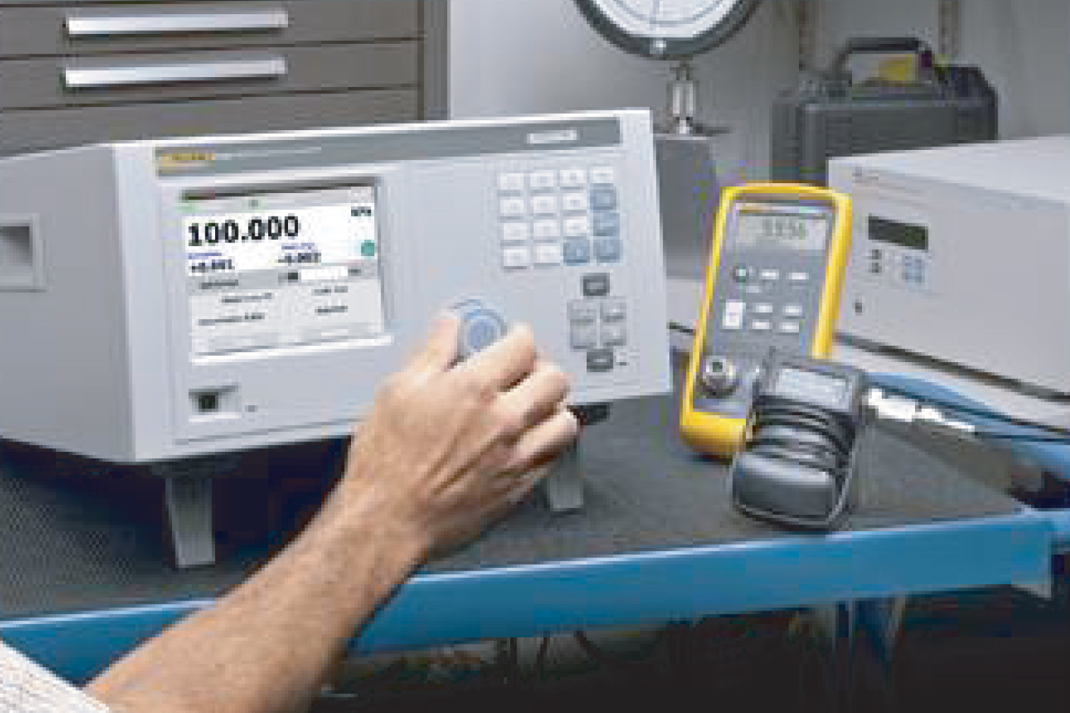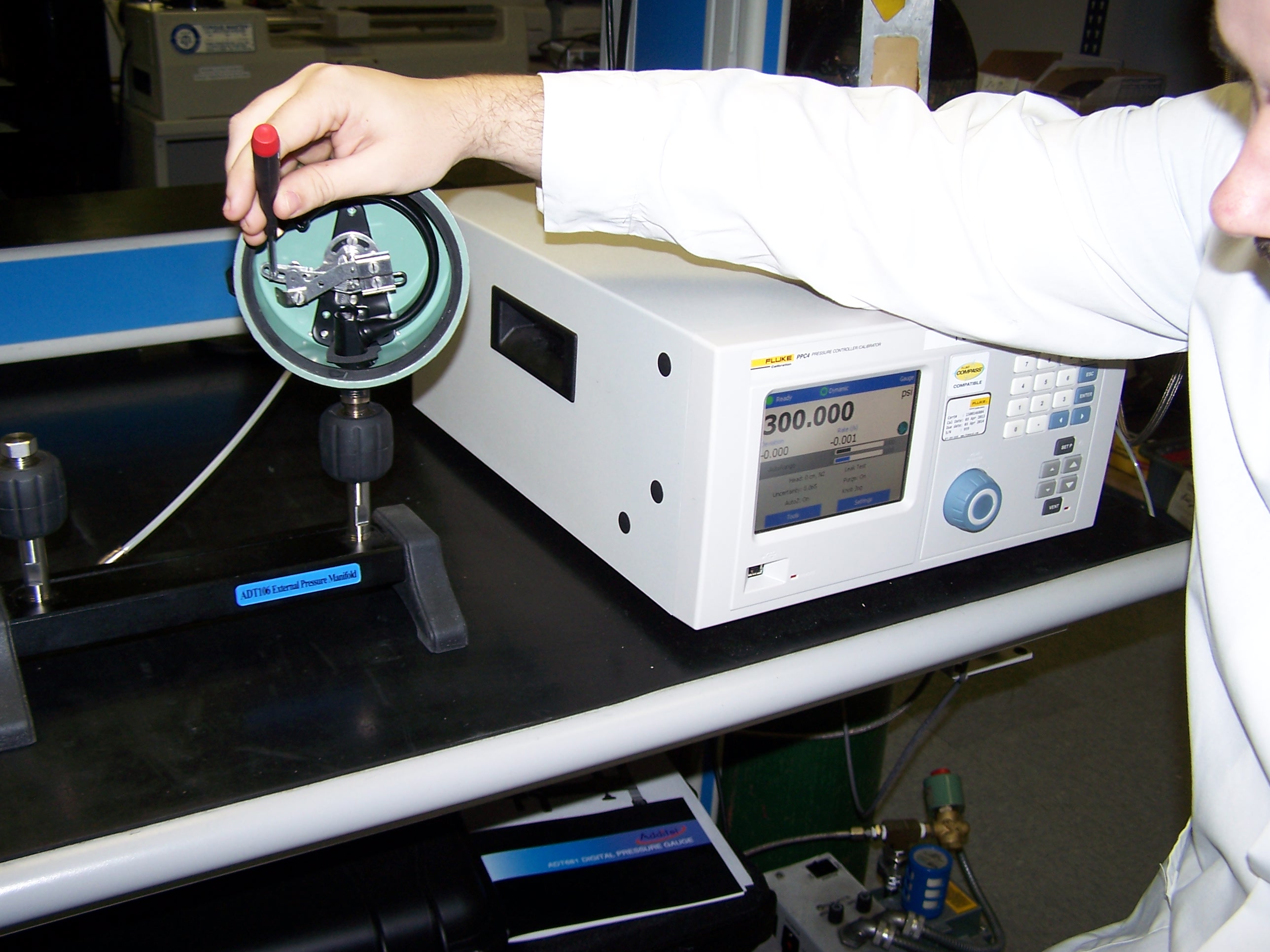 Accurate Instrument Repair calibrates pressure gauges and transducers with the Fluke E-DWT. This is a modern alternative to the traditional deadweight tester and provides our technicians with fast and accurate measurements.